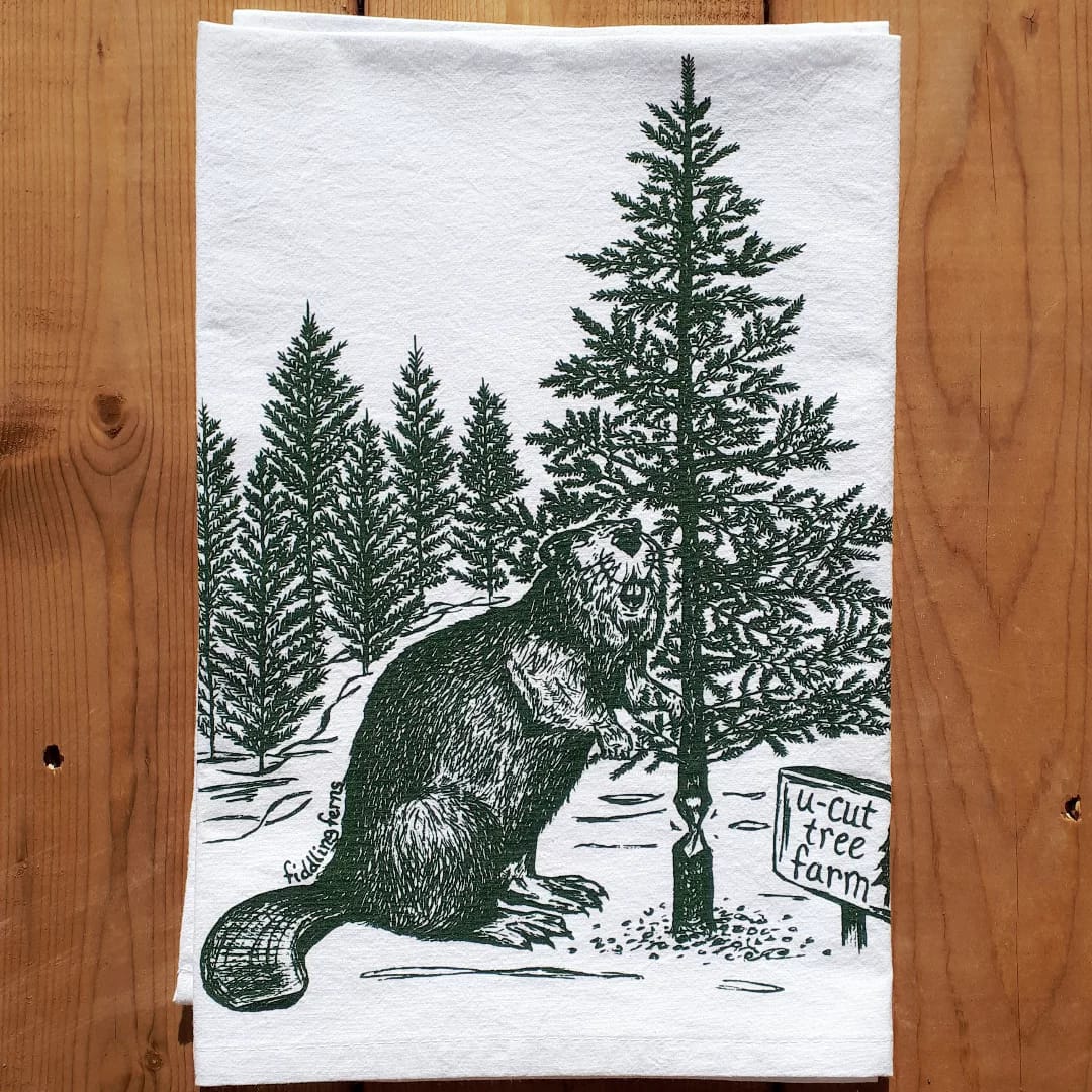 Beaver at a U-Cut Tree Farm Flour Sack Tea Towel