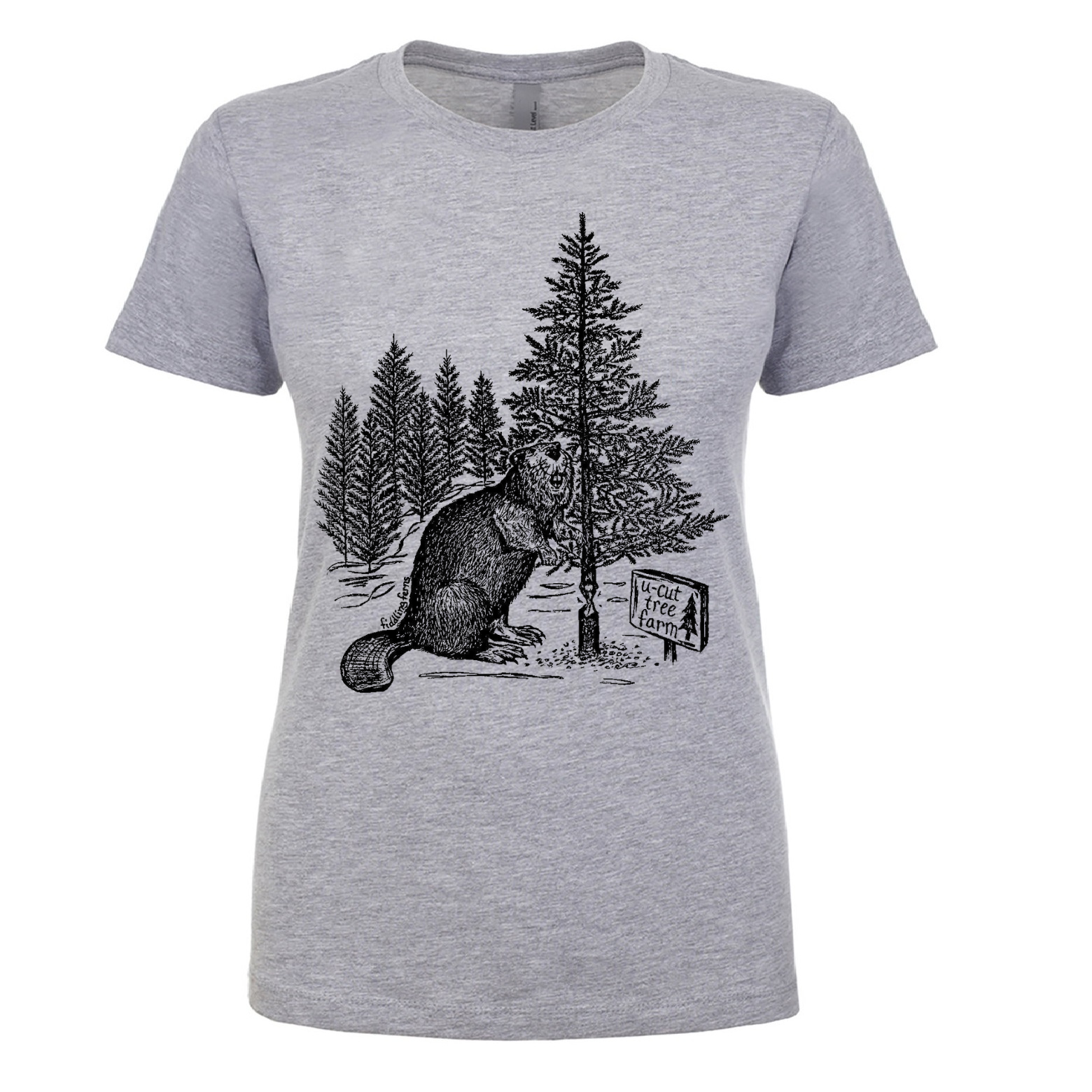 Beaver at a U Cut Tree Farm Ladies Snug Fit T Shirt
