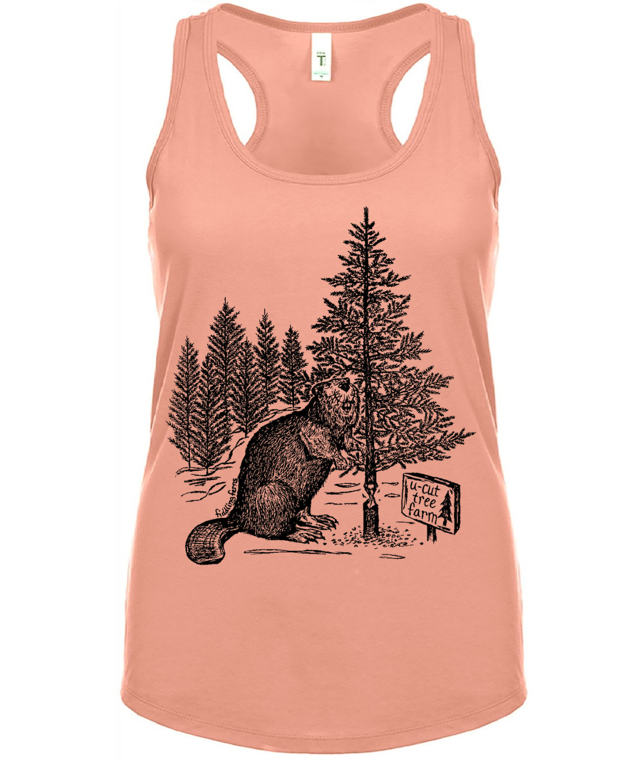 Beaver at a U Cut Tree Farm Ladies Tank Top