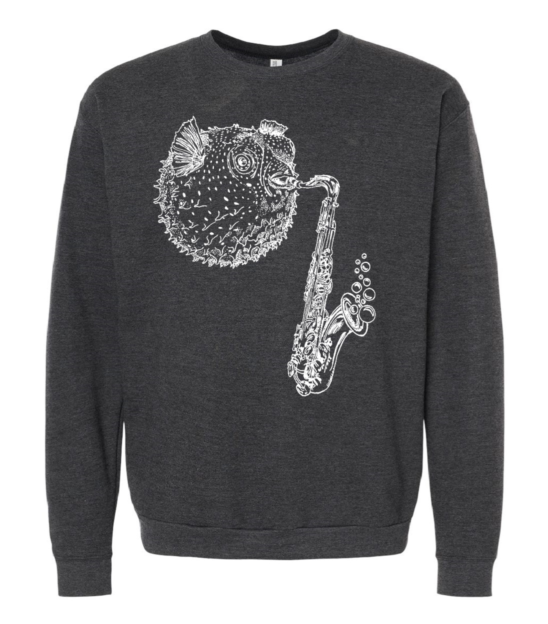 Blowfish Playing Saxophone Unisex Fleece Crewneck