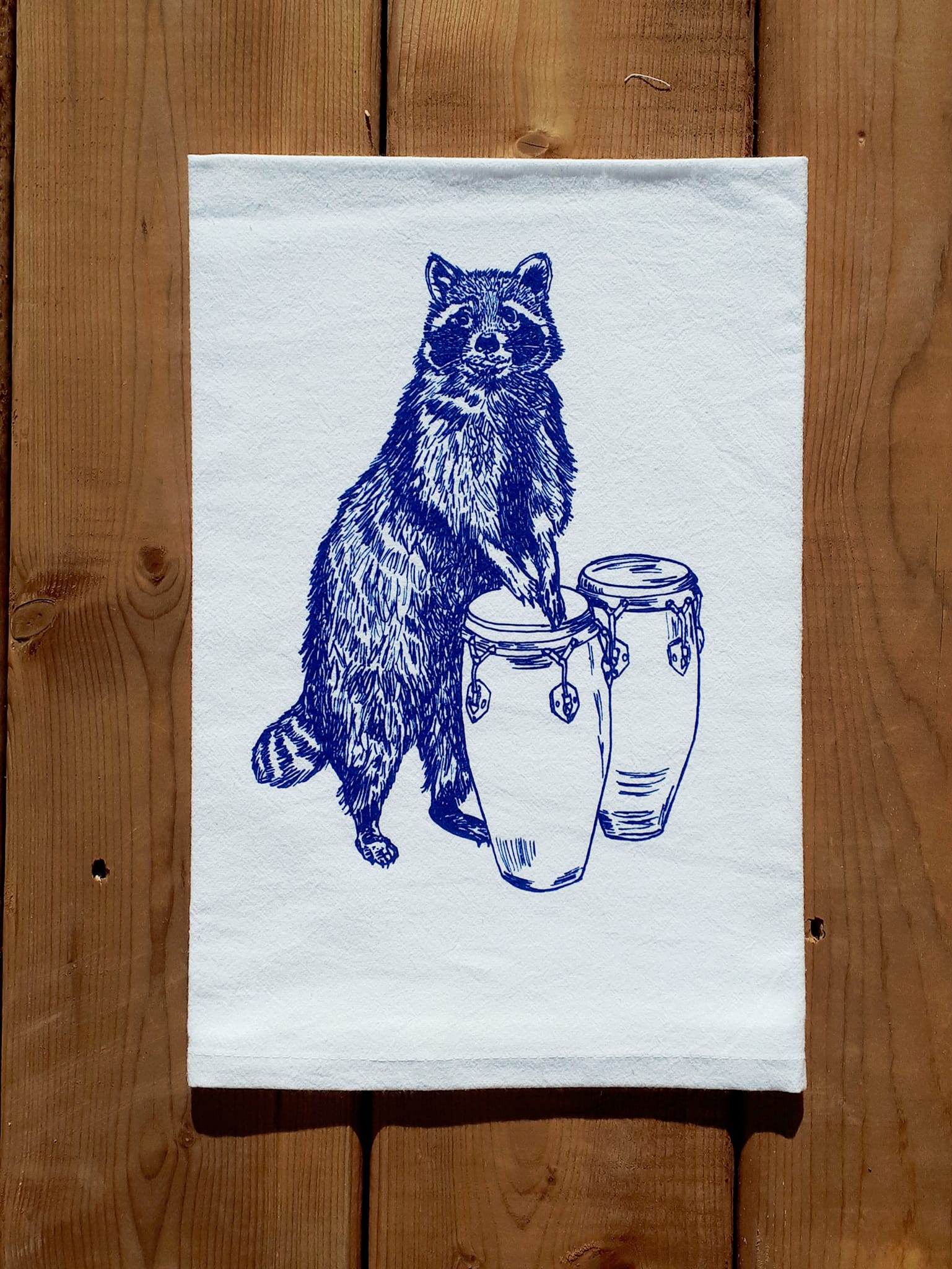 Raccoon Drummer Flour Sack Tea Towel
