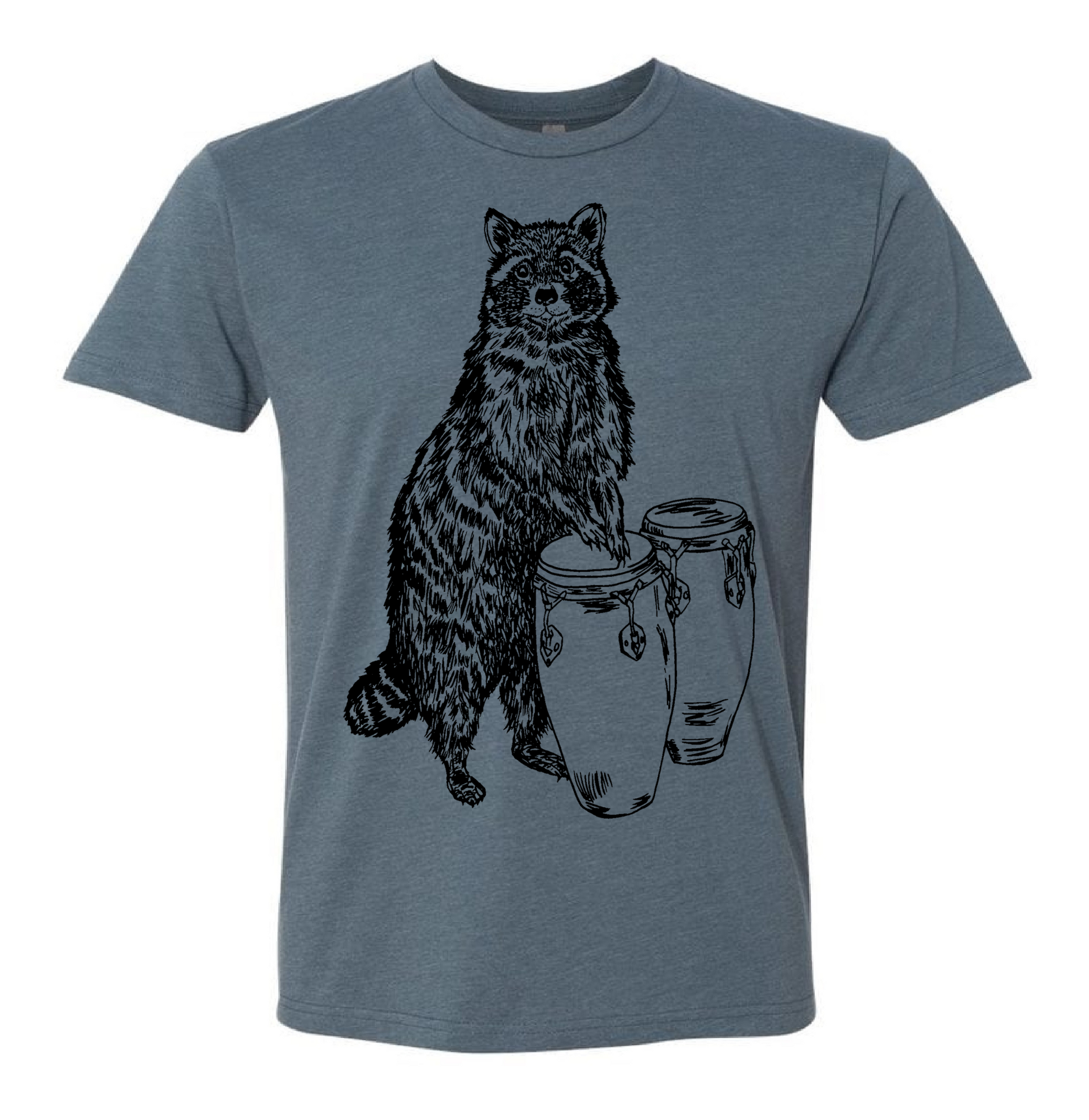 This rebel raccoon drummer is rockin' the conga drums. He's in a garage band, but hopefully not my garage!