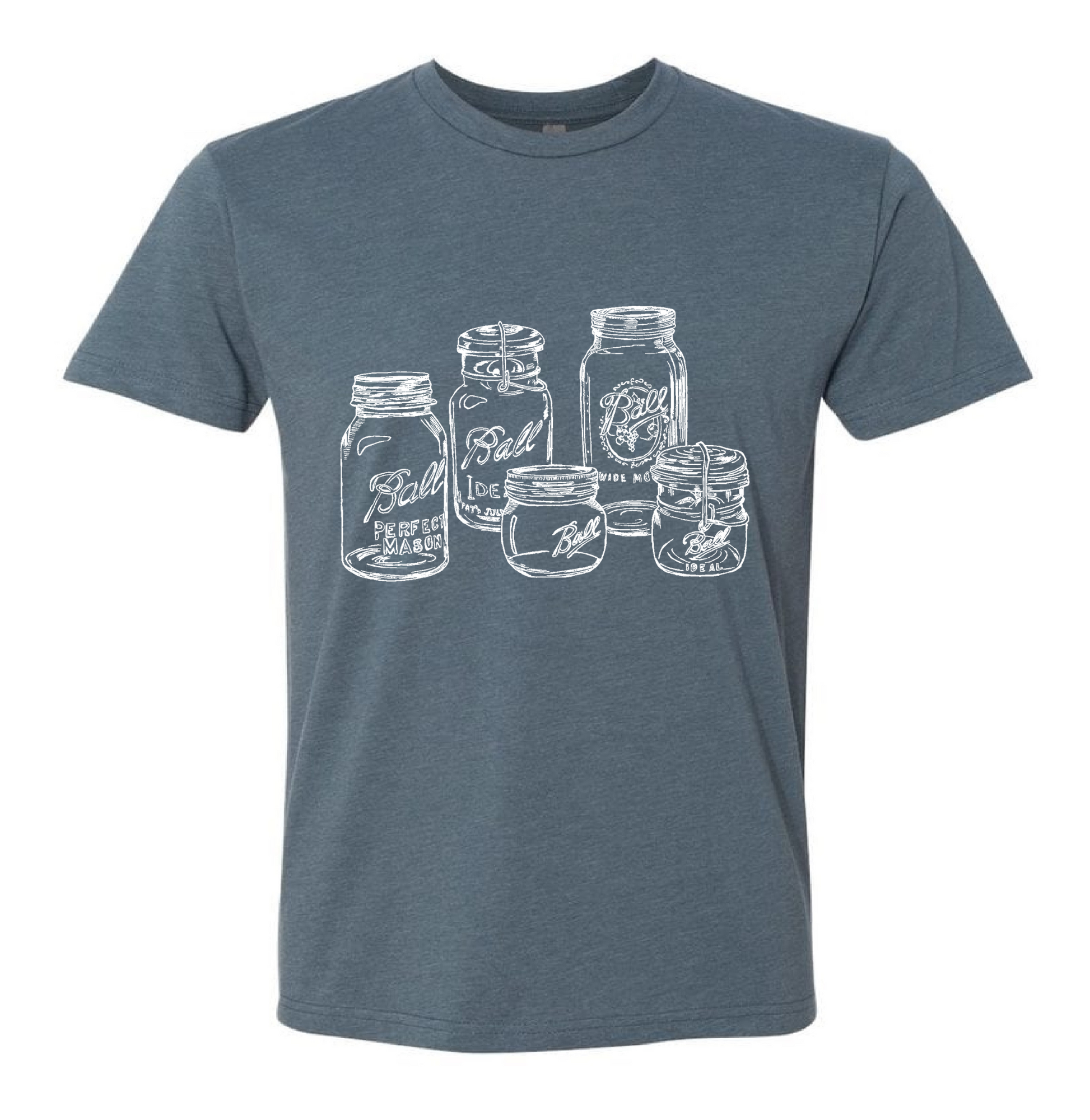 A detailed drawing of a collection of vintage mason jars. Perfect for canning and gardening.