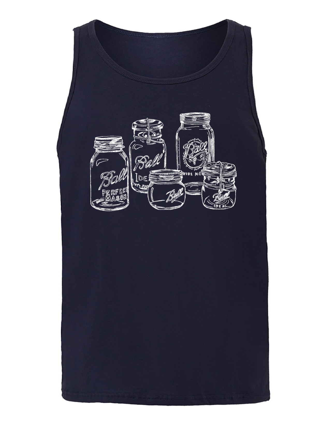 This detailed drawing is of a collection of vintage mason jars. Perfect for gardening and canning.