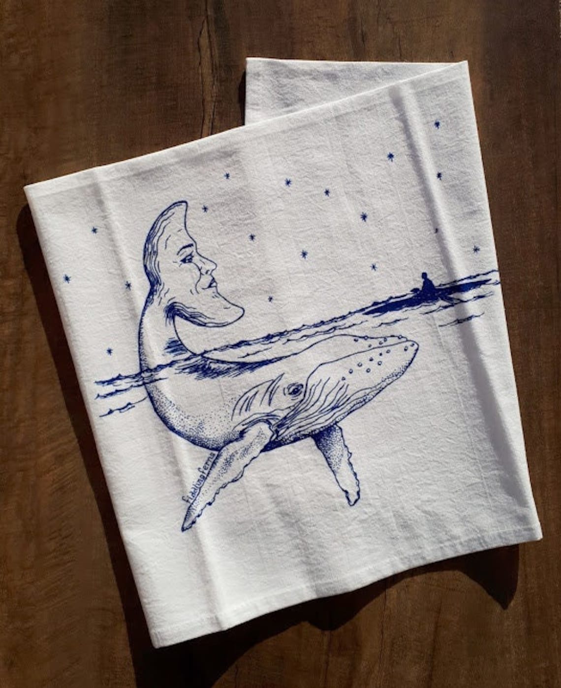 Whale with a Moon Tail Flour Sack Tea Towel